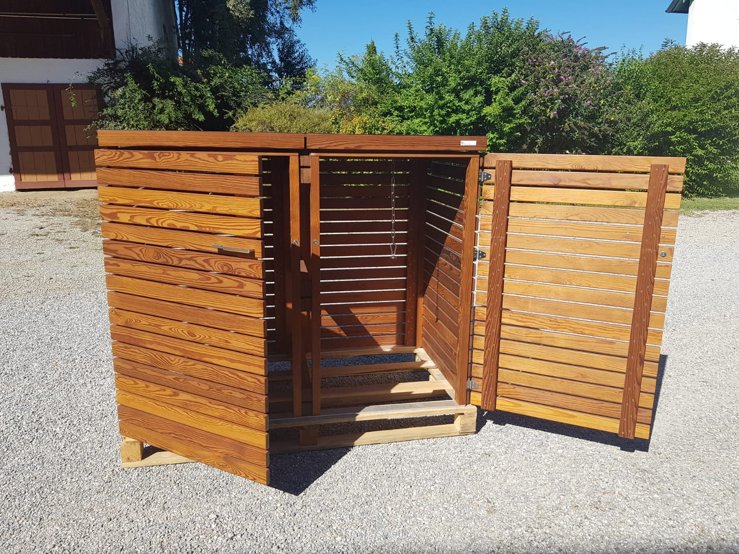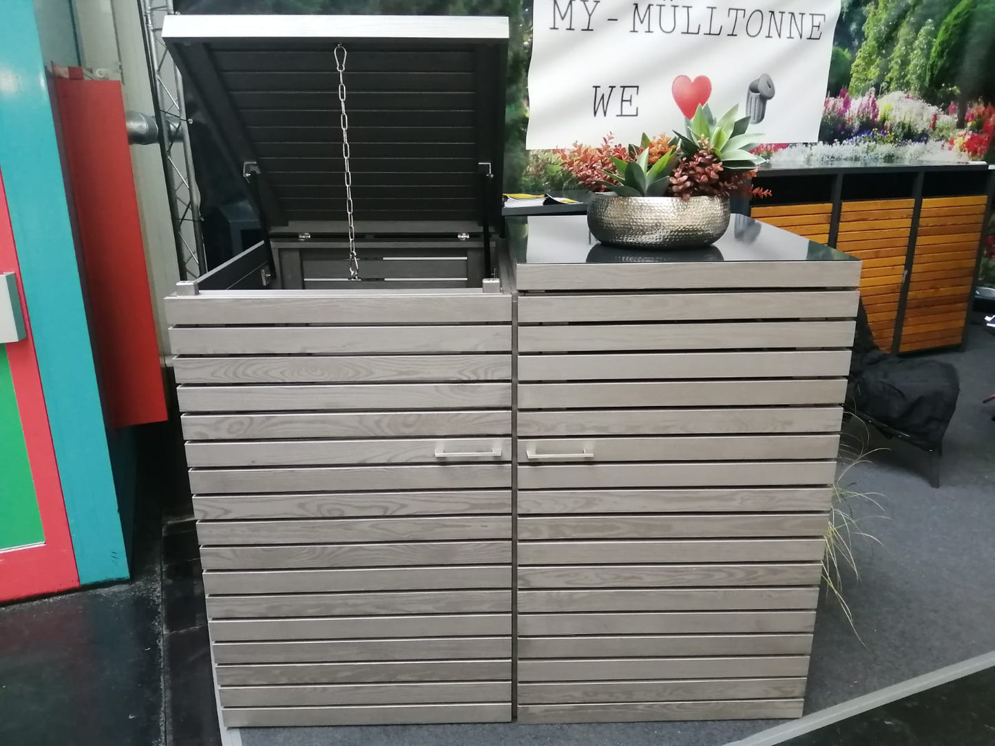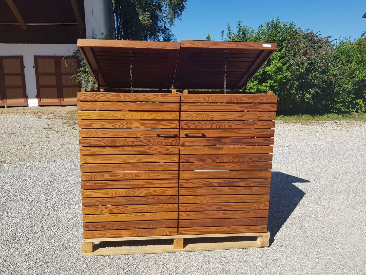 Edle 2er Holzbox mit Dachklappe für 120 / 240 Liter