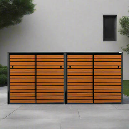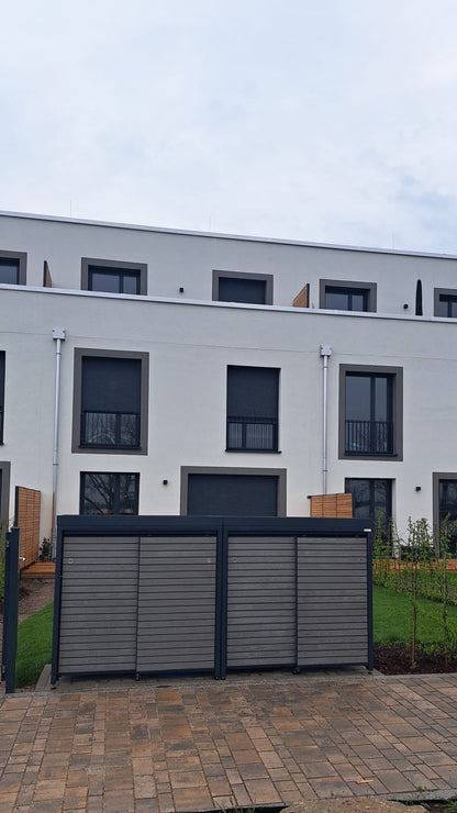 Unsere PREMIUM Metall 4er Mülltonnenbox mit Schiebetüren bietet die perfekte Lösung, um vier 120 Liter oder 240 Liter Mülltonnen stilvoll und funktional zu verstecken. Mit hochwertiger Verarbeitung und einem eleganten, modernen Design wertet sie Ihren Außenbereich auf und sorgt für Ordnung und Sauberkeit. Besonders praktisch sind die Schiebetüren, die eine platzsparende Bedienung ermöglichen, insbesondere in Bereichen, in denen klassische Türen zu viel Platz einnehmen würden.