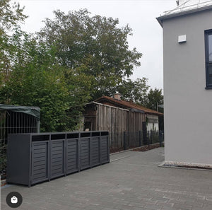 Τα κουτιά απορριμμάτων κορυφαίας σχεδίασης MyMülltonne είναι τα σκουπίδια που καλύπτουν με καλύτερη σχέση ποιότητας-τιμής και έξυπνο σχεδιασμό. Τα PREMIUM μοντέλα μας συνδυάζουν μοντέρνο, κομψό σχεδιασμό με ελκυστικό τιμή και της υψηλότερης ποιότητας και προσφέρουν χώρο για τρεις κάδους απορριμμάτων 240 λίτρων. Καθαρή, γραμμική σχεδίαση, εξαιρετικά συμπαγείς πόρτες, απλές και χαμηλού θορύβου. Κρύψτε τους αντιαισθητικούς κάδους απορριμμάτων σας σε κομψά κουτιά σκουπιδιών - με αυτόν τον τρόπο ο εξωτερικός σας χώρος γίνεται μια πραγματική γιορτή για τα μάτια.