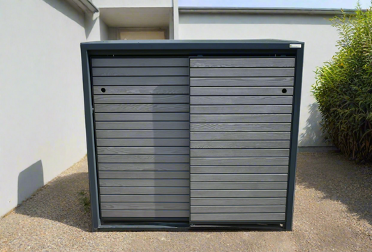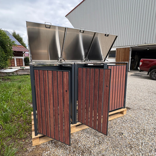 LAGER - PREMIUM Holz 2er Mülltonnenbox mit Schiebetüren