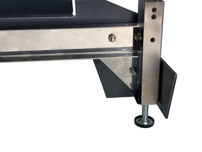 Dieses Modell ist für Wärmepumpen gedacht, die auf dem Boden neben der Wand installiert werden. Es ist daher mit verstellbaren Halterungen ausgestattet, mit denen der Abstand zur Wand um bis zu 6 cm vergrößert werden kann, sowie mit verstellbaren Füßen, die eventuelle Bodenunebenheiten ausgleichen.