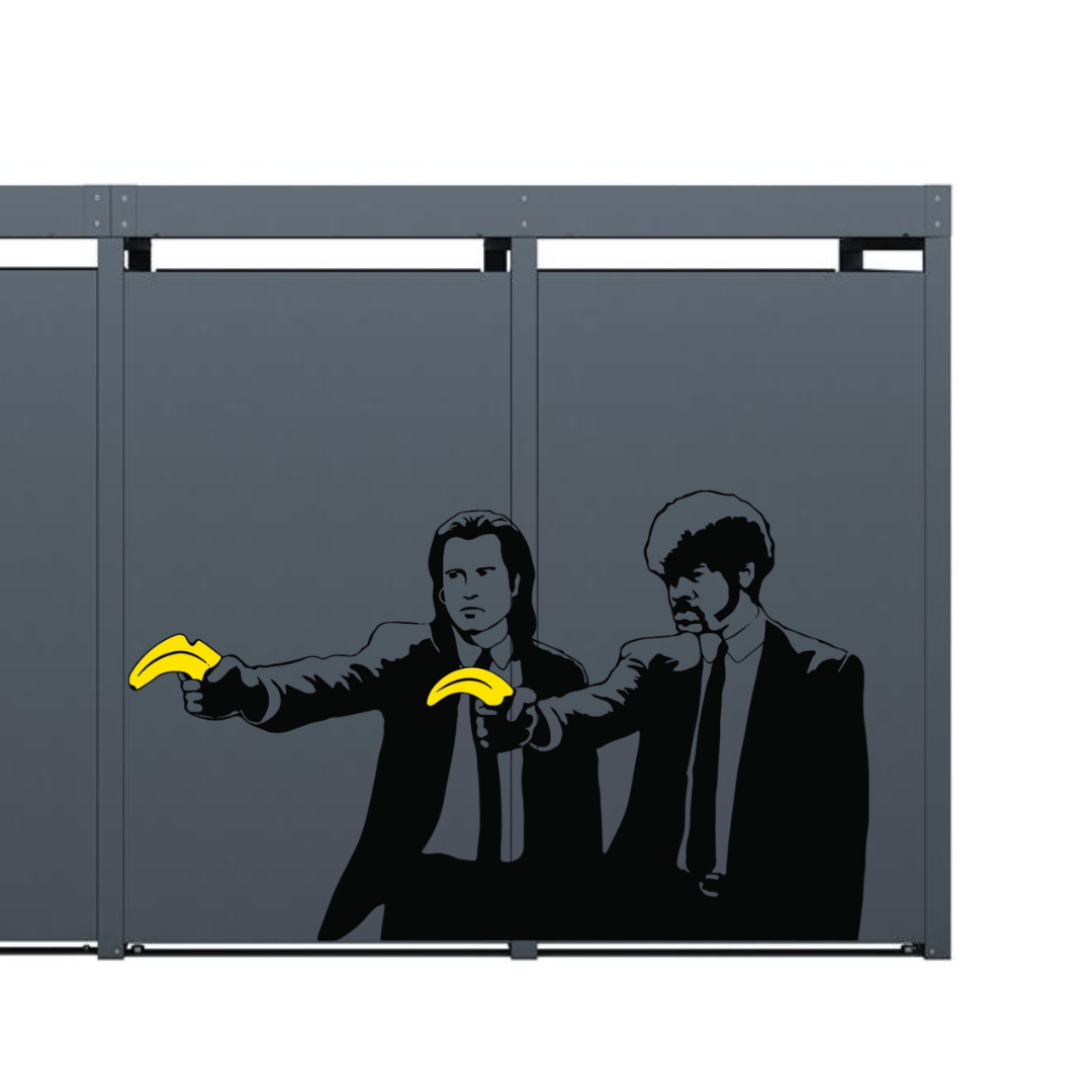 🎨 Urbaner Street-Art Look: Das „Pulp Fiction Banksy“-Design verwandelt Ihre Mülltonnenbox in ein modernes Kunstwerk für den Alltag.