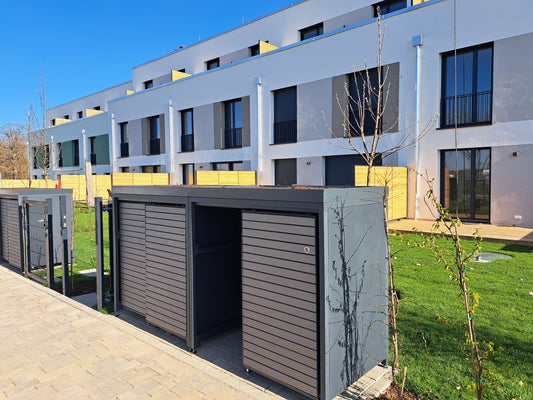 Doch warum sollten Sie eine Mülltonnenbox mit Schiebetür kaufen, anstatt eines unserer üblichen Modelle? Auf diese Frage bieten wir Ihnen hier unsere Antworten. Im Folgenden zeigen wir Ihnen, welche Vorteile eine Schiebetür einer Mülltonnenbox verleiht. Zusätzlich präsentieren wir Ihnen jedoch die Qualitätsmerkmale, die für jedes unserer Modelle gelten. Überzeugen Sie sich von der Qualität unseres Sortiments:
