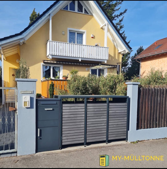 Vous pouvez le faire avec les bacs à roulettes de haute qualité et stables, qui sont toujours entièrement assemblés et disponibles en 120 et 240 litres Faites de votre cour avant un véritable régal pour les yeux. Rangez vos poubelles dans nos poubelles robustes et de haute qualité de MyMülltonne. Nous serions heureux de fabriquer la boîte selon vos exigences individuelles de taille et de couleur pour correspondre à la maison !