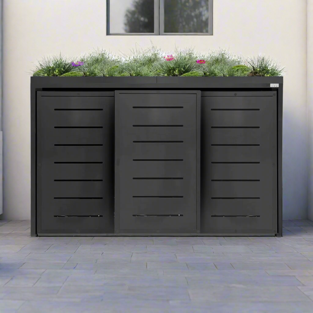 PREMIUM Metall 3er Mülltonnenbox mit Schiebetüren