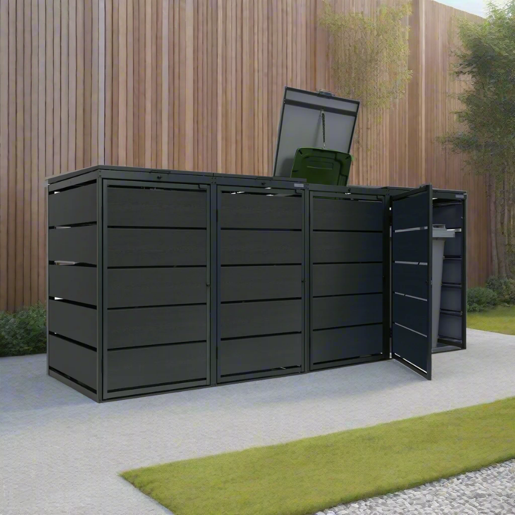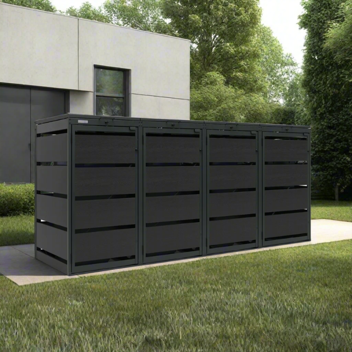 Die OBOX 4er Mülltonnenbox ist eine robuste und stilvolle Lösung zur diskreten Unterbringung von Außentonnen. Mit Platz für vier 120 oder 240-Liter-Behälter verbindet die OBOX Funktionalität und Ästhetik und ist in verschiedenen Standardfarben erhältlich, um sich perfekt in jedes Außenbereichsdesign einzufügen.