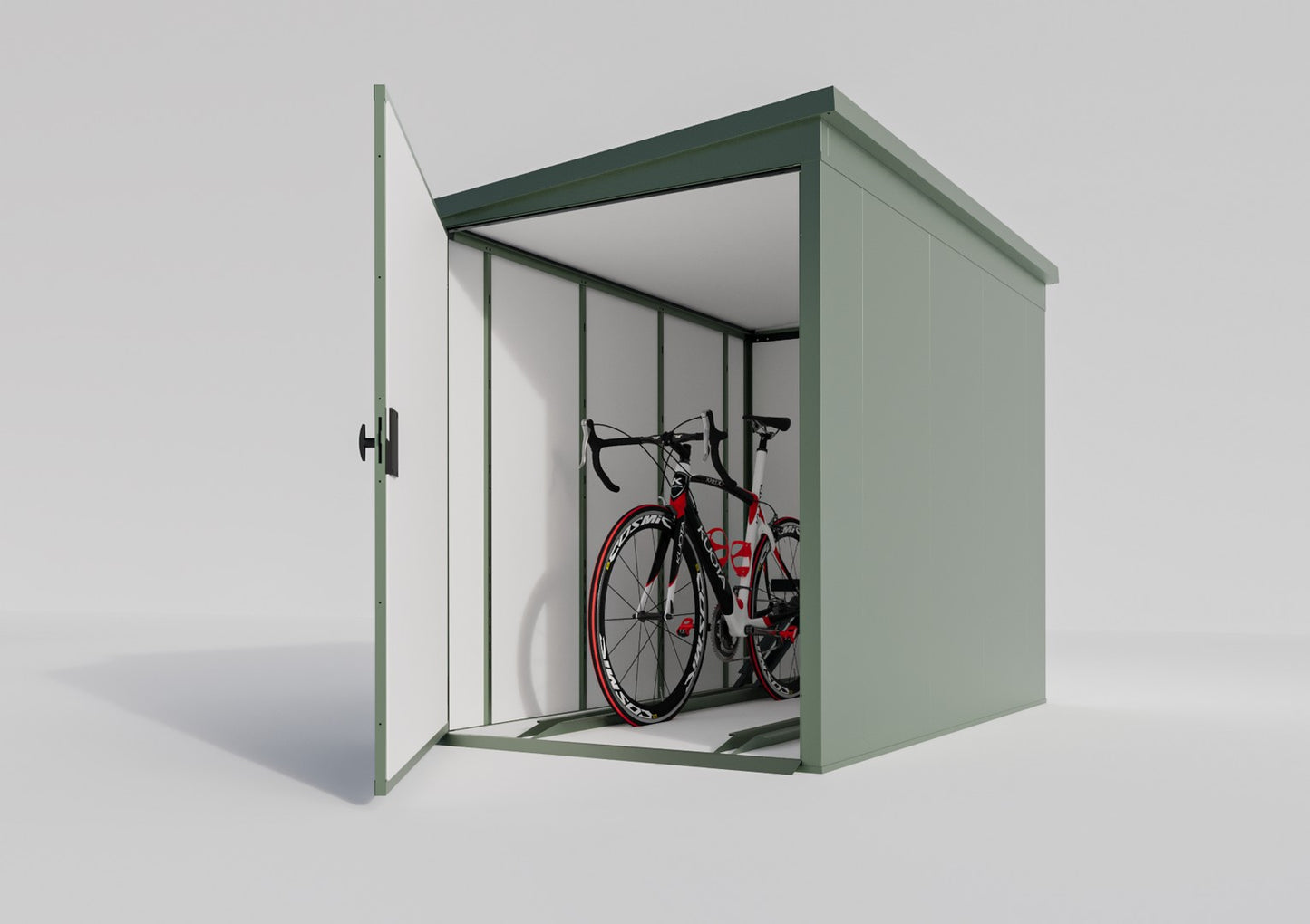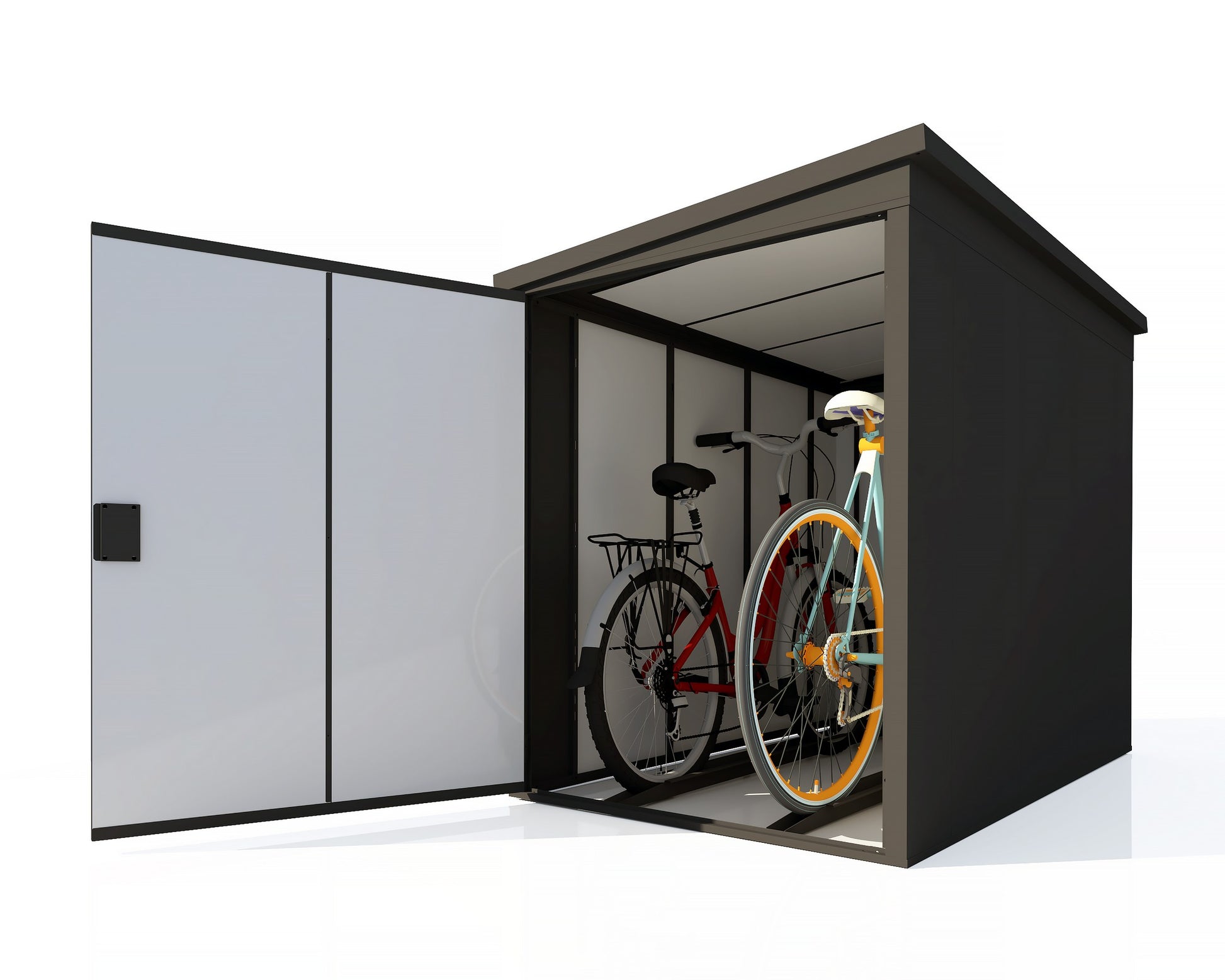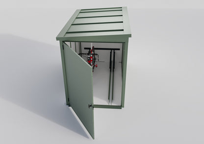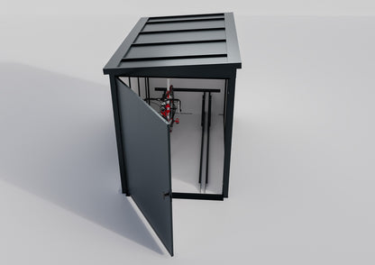 - Moderne Farbvarianten: Erhältlich in verschiedenen, modernen Farben wie RAL 7016 (Anthrazitgrau), RAL 9005 (Tiefschwarz), RAL 9006 (Silber) und RAL 6020 (Grün), lässt sich die Fahrradgarage perfekt in Ihre Umgebung integrieren und passt sich Ihrem Stil an.